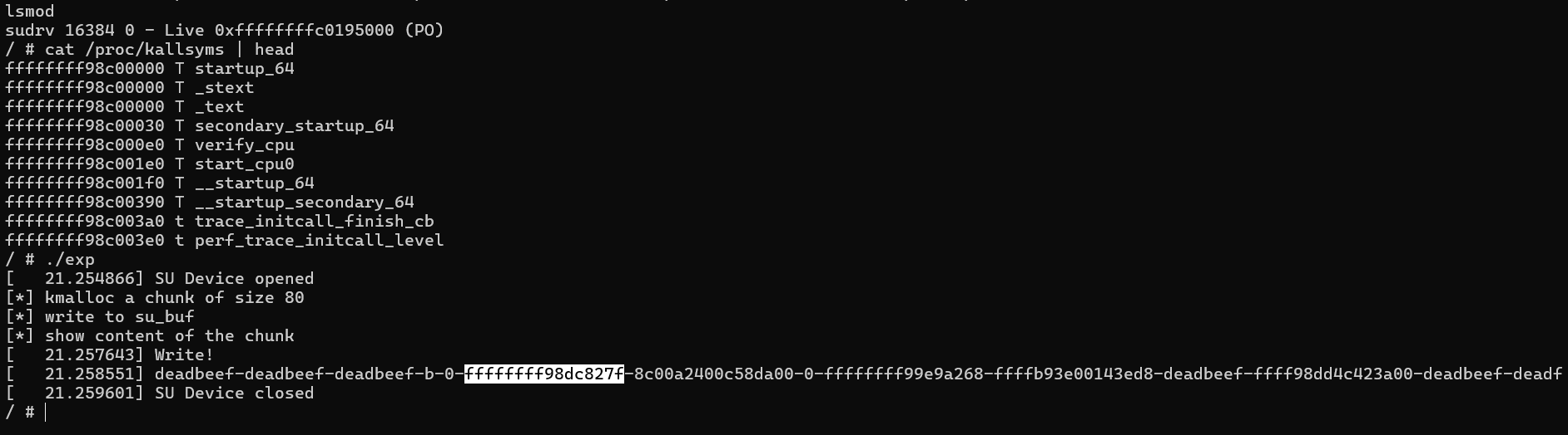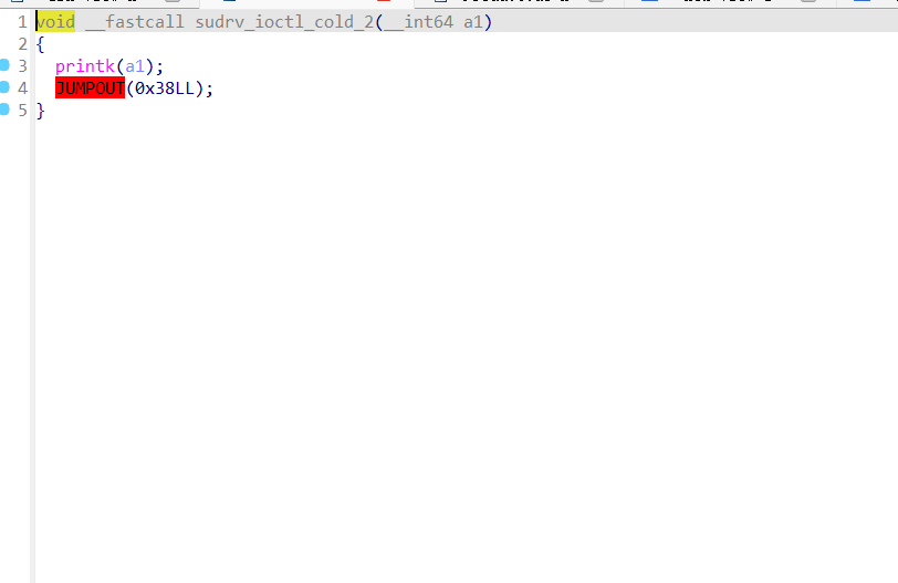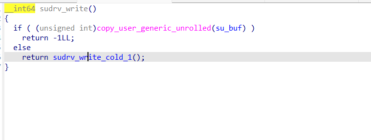 ioctl有三种功能,其中sudrv_ioctl_cold_2 可以用printk 打印出su_buf 内容并返回。而且具体打印逻辑也存在格式化字符串漏洞。