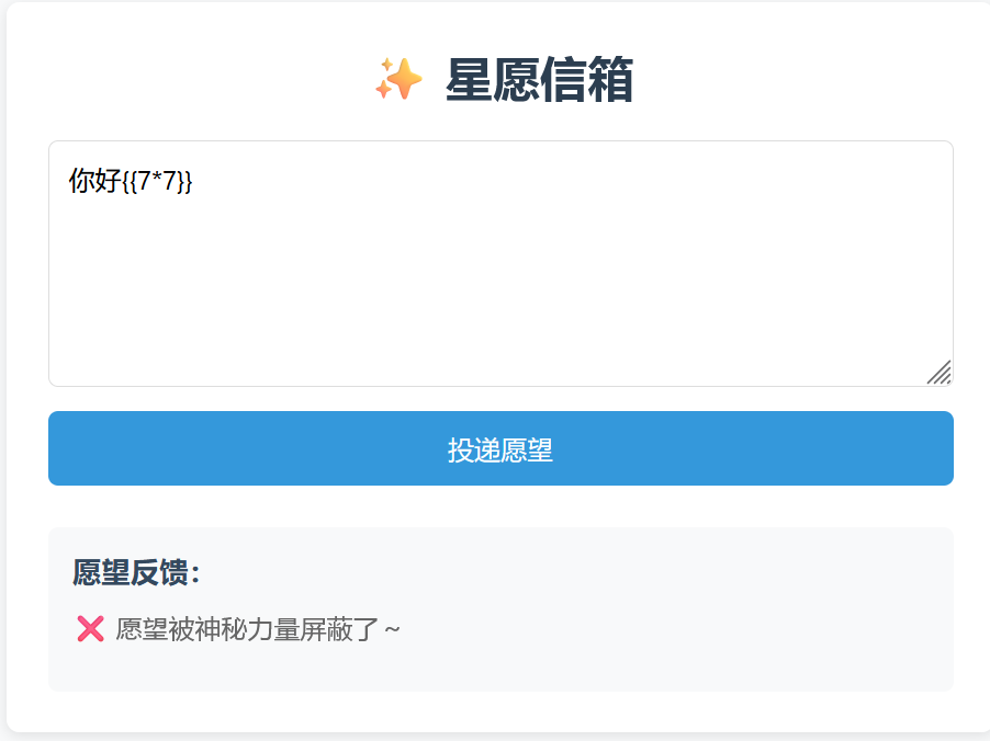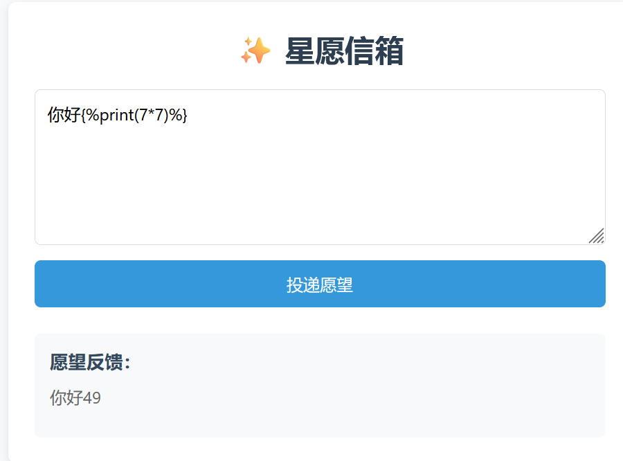可以写东西,提交会显示要输入文字,于是加上几个字,后面跟上{{7*7}}