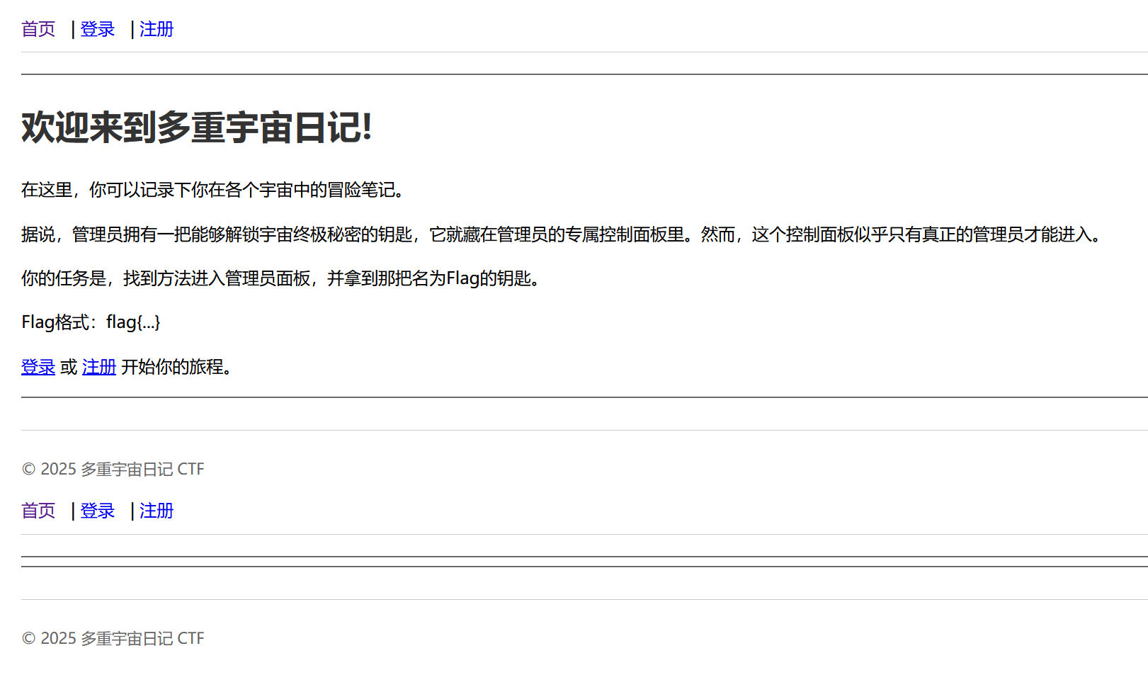 进来登录发现没用户,直接随便注册一个用户,这里介绍说要成为真正的管理员,题目介绍说了原型链