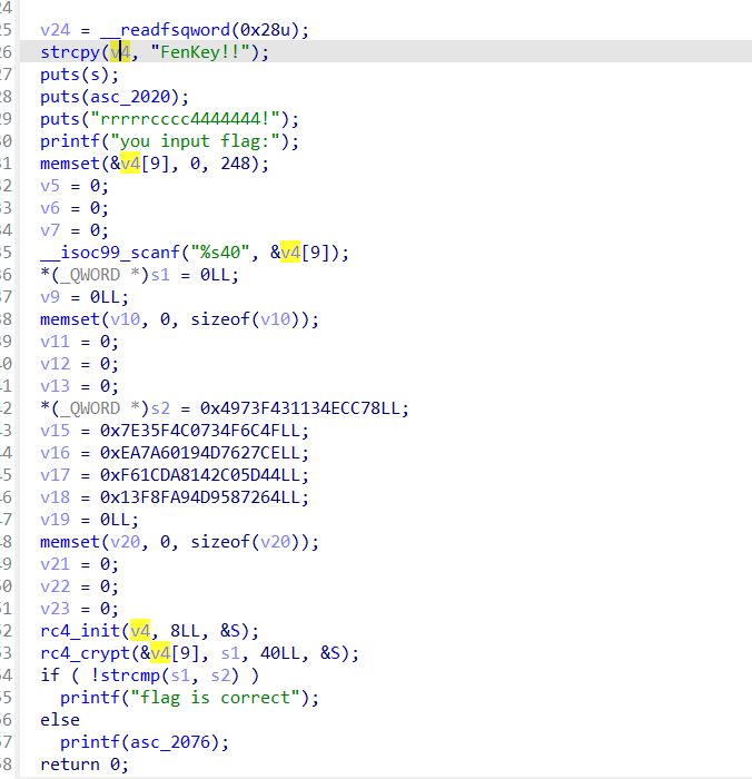 主函数一看上去就是一个rc4加密输入与指定值比较,key也直接给了,为FenKey!!,那么我们只要进去看看rc4_init和rc4_crypt算法有没有魔改即可。