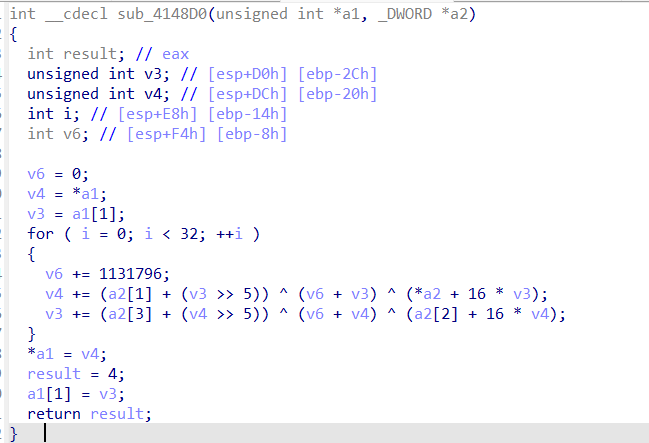 其中encrypt加密中具体实现的函数同样也有以上两种花指令,全部patch掉就行,然后可以看反汇编。