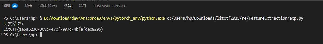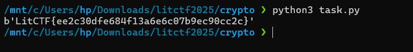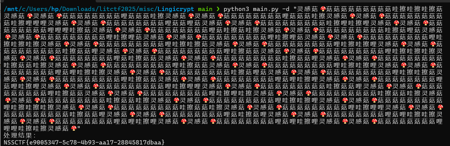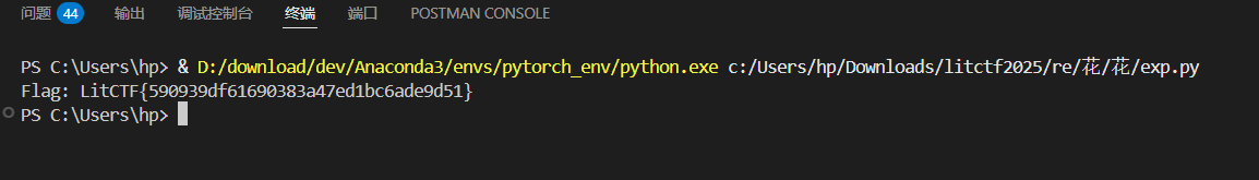 1 2 3 4 5 6 7 8 9 10 11 12 13 14 15 16 17 18 19 20 21 22 23 24 25 26 27 28 29 30 31 32 33 34 35 36 37 38 39 40 41 42 43 import structhex_data = ''' 90 16 00 00 58 3E 00 00 F1 6F 00 00 F0 86 00 00 66 9D 00 00 30 AB 00 00 71 CA 00 00 29 CF 00 00 35 E3 00 00 92 E4 00 00 FD F1 00 00 80 DE 00 00 C8 D0 00 00 35 C2 00 00 B5 B9 00 00 CF B1 00 00 9F 9E 00 00 86 9E 00 00 B4 96 00 00 50 A5 00 00 D3 A0 00 00 35 A1 00 00 CA 99 00 00 C0 AC 00 00 78 BE 00 00 96 C1 00 00 00 BC 00 00 C3 B5 00 00 F0 B7 00 00 65 B4 00 00 73 B6 00 00 1F B7 00 00 E2 BB 00 00 4F CB 00 00 AD D2 00 00 20 DE 00 00 94 EC 00 00 30 FC 00 00 B8 04 01 00 EE F6 00 00 C9 ED 00 00 85 E3 00 00 8B D7 00 00 19 DE 00 00 4C C9 00 00 14 AD 00 00 88 7E 00 00 B9 6B 00 00 C6 4C 00 00 06 38 00 00 C9 2D 00 00 98 23 00 00 E1 19 00 00 ''' .strip().split()cipher_bytes = bytes ([int (b, 16 ) for b in hex_data]) cipher = [struct.unpack("<I" , cipher_bytes[i:i+4 ])[0 ] for i in range (0 , len (cipher_bytes), 4 )] key = "LitCTF2025" key_ints = [ord (c) for c in key] key_len = len (key) plain_len = len (cipher) - key_len + 1 plaintext = [0 ] * plain_len for i in range (plain_len): acc = cipher[i] for j in range (1 , min (i + 1 , key_len)): acc -= plaintext[i - j] * key_ints[j] plaintext[i] = acc // key_ints[0 ] print ("明文结果:" )print ("" .join(chr (x) for x in plaintext))