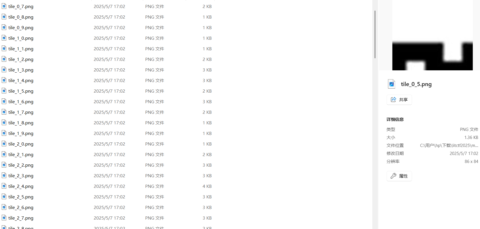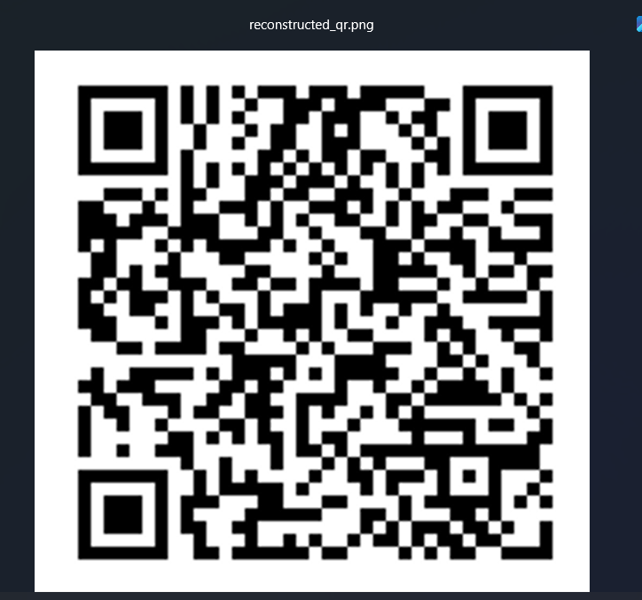 1 2 3 4 5 6 7 8 9 10 11 12 13 14 15 16 17 18 19 20 21 22 23 24 25 26 27 28 29 from PIL import Imageimport osgrid_size = 10 swap_xy = False sample_tile = Image.open ("tile_0_0.png" ) tile_width, tile_height = sample_tile.size output_image = Image.new("RGB" , (tile_width * grid_size, tile_height * grid_size)) for i in range (grid_size): for j in range (grid_size): x, y = (j, i) if swap_xy else (i, j) filename = f"tile_{x} _{y} .png" if not os.path.exists(filename): print (f"[!] 缺失文件:{filename} " ) continue tile = Image.open (filename) output_image.paste(tile, (j * tile_width, i * tile_height)) output_image.save("reconstructed_qr.png" ) print ("拼接完成,已保存为 reconstructed_qr.png" )