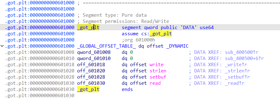 其中我们在IDA中看到的.got.plt 段就是我们俗称的got 表: