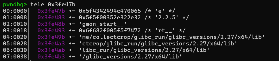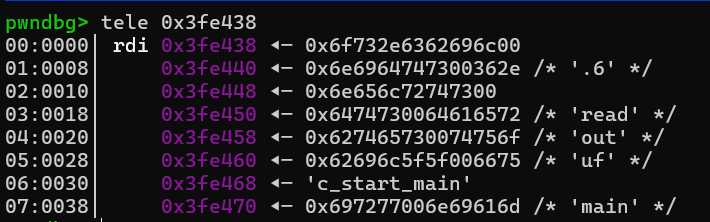 发现是我们前面直接把read字符串换成system字符串写入后,后面用到的版本信息错位了。那么我们前面就需要确保后续信息的对齐,可以破坏掉一些已经解析过的libc函数的字符串缩减字符,由于不会再用到该字符串,所以无伤大雅。