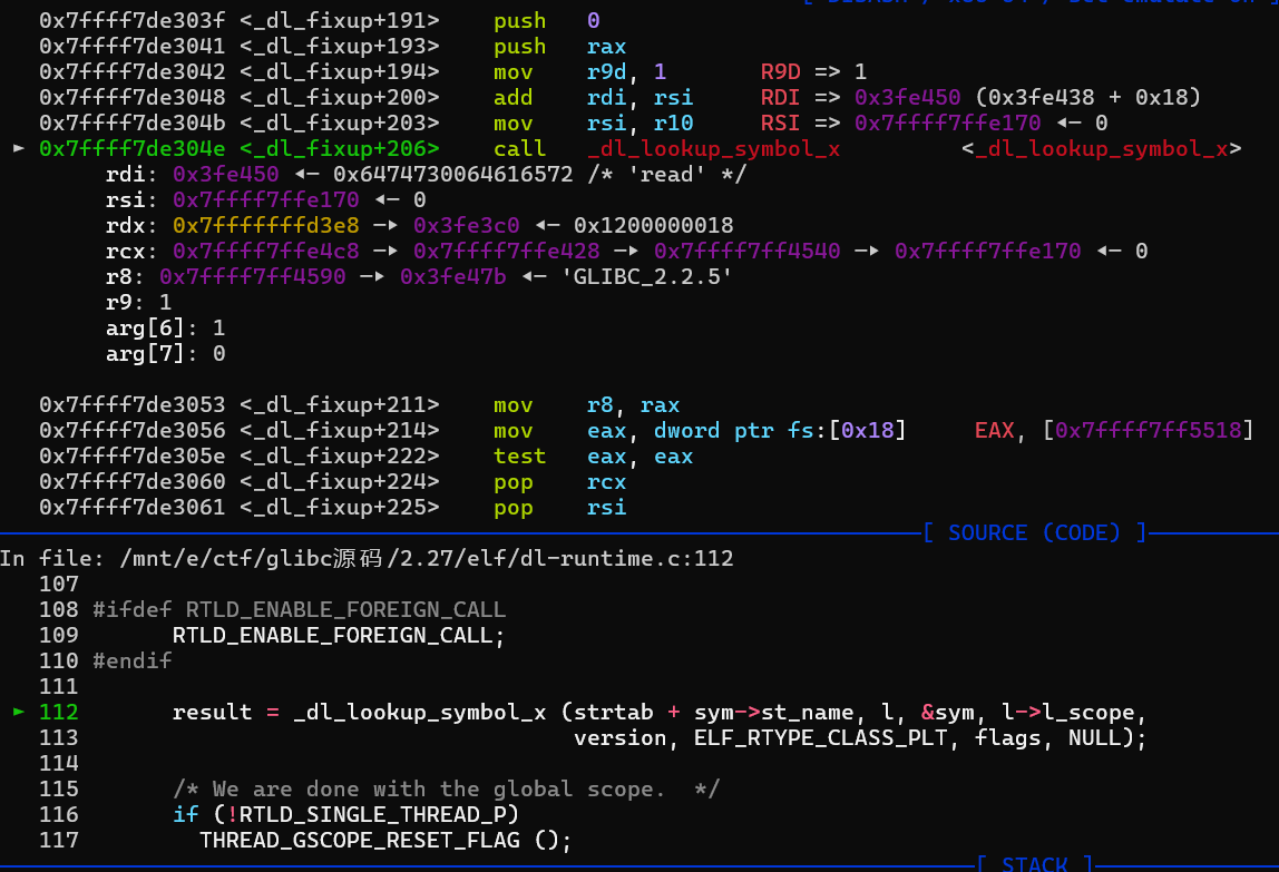 我们可以定位到2.27glibc源码进行查看,**_dl_runtime_resolve位置在 sysdeps/x86_64/dl-trampline.h中。而 _dl_fixup在 elf/dl-runtime.c中。这里我们主要看 _dl_fixup**实现。