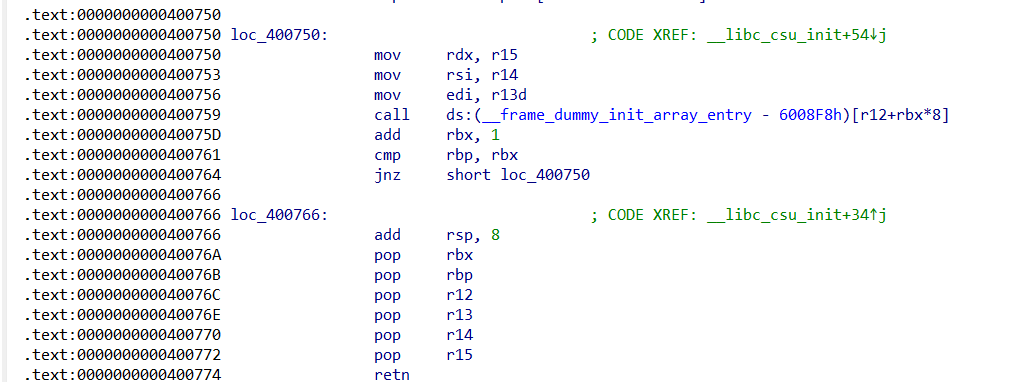 题目里没啥别的控制rdx的gadget,这里可以用ret2csu。