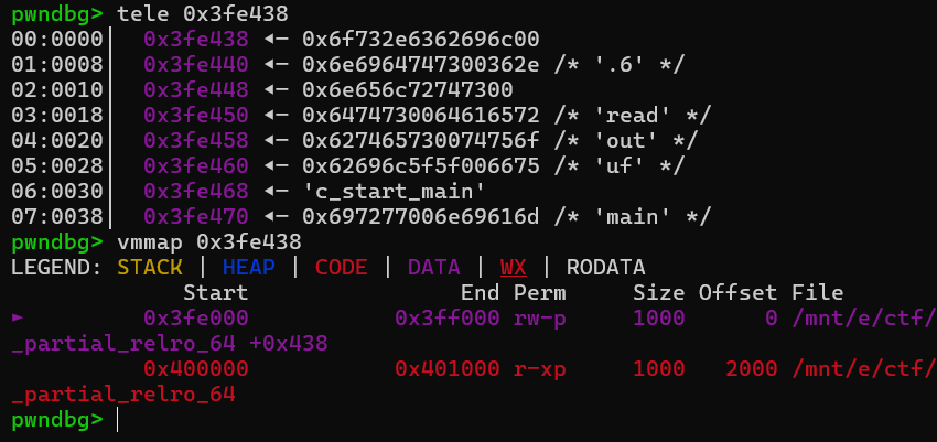 但我之后发现有字符表位于0x3fe438 处好像是直接可写的,而且其地址也是固定的,那么就可以试试直接覆盖不在程序段的字符表。