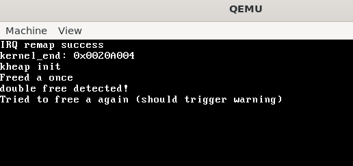 void test_double_free() { void *a = kmalloc(64); kfree(a); kernel_printf("Freed a once\n");